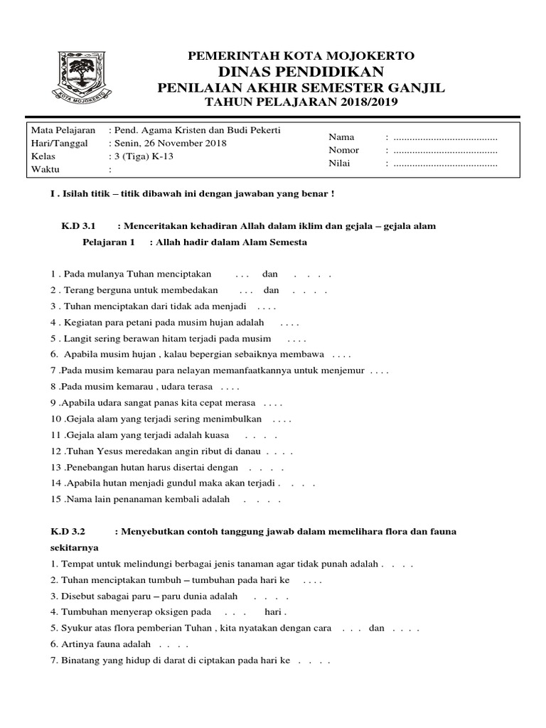 Soal agama kristen kelas 3 sd dan kunci jawaban. We did not find results for: Check spelling or type a new query. Maybe you would like to learn more about one of these?