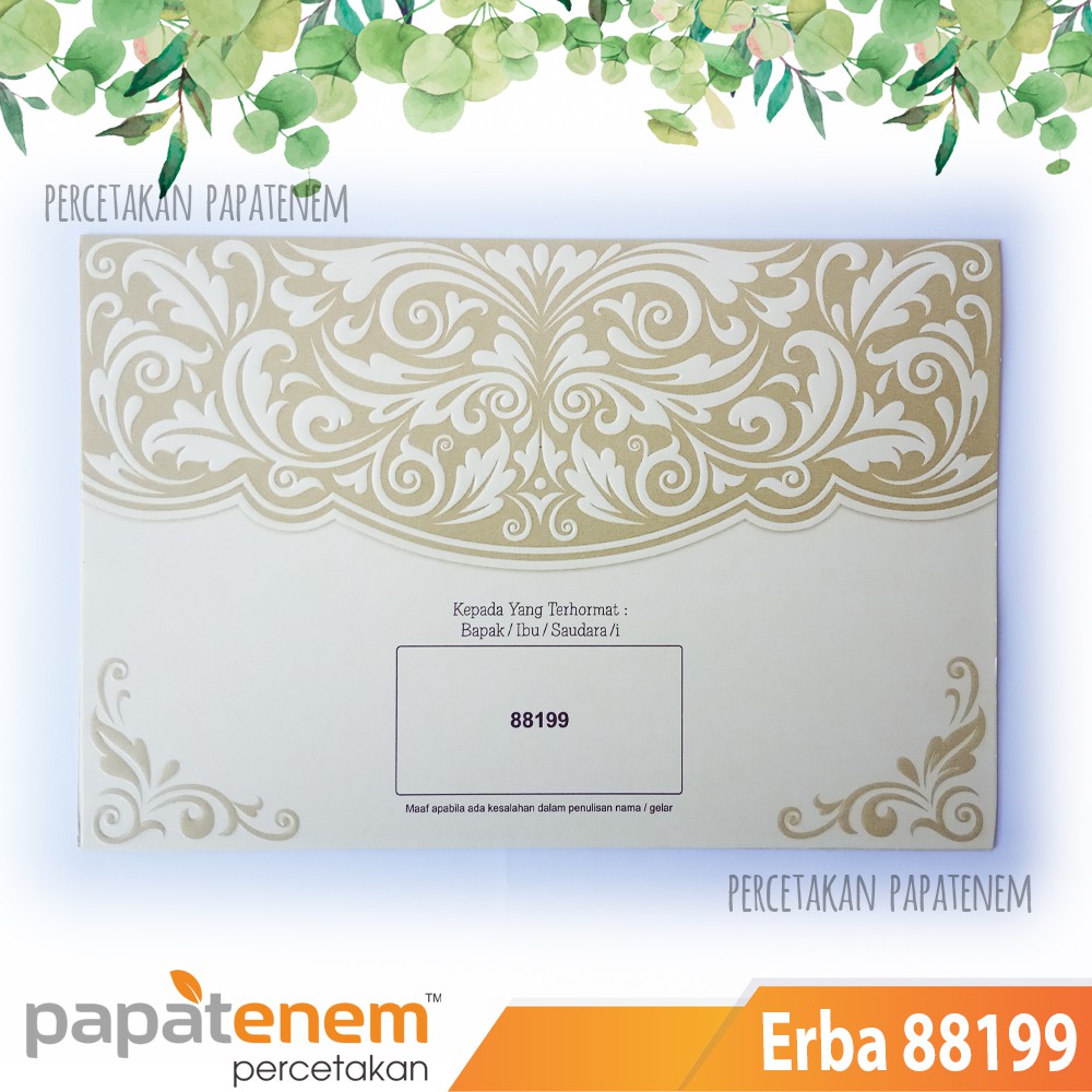 Undangan pernikahan erba 88199 murah (free desain cetak plastik opp). Listed by special undangan cetak dan digital. Undangan pernikahan erba 88199, produk kartu undangan untuk acara pernikahan dengan desain terbaru dan elegan … lihat detail . Bahan, cover (erba 88199), isi (erba 88199). Undangan era baru (erba 88199).